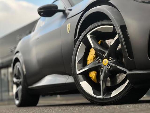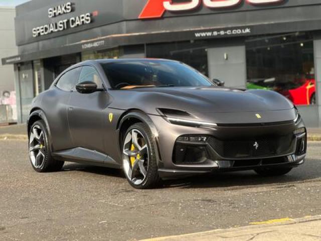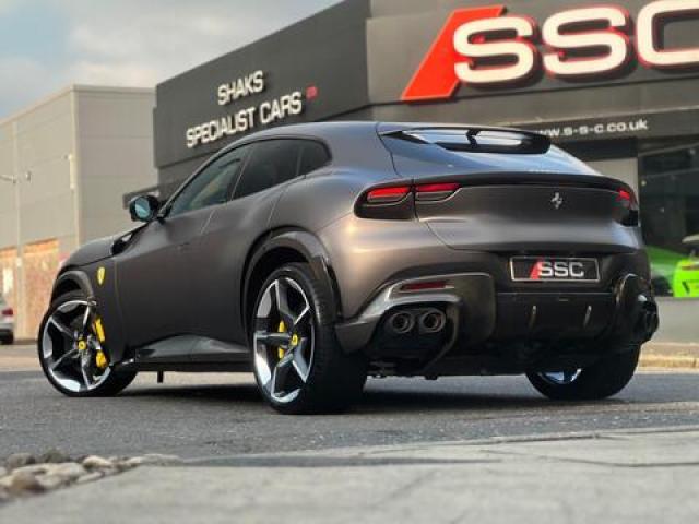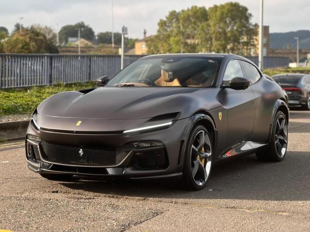 Stunning and Rarely Specified Ferrari Purosangue V12 Finished In Special Order Grigio 812S Opaco (Matte Paint) With Cuoio Leather. Extensive Spec Inc: Allestimento Speciale Option, Paint Protection Film, Panoramic Roof, Suspension Lifter, Yellow Brake Calipers, CEXC With Special Carbon, Rear Diffuser In Carbon, Carbon Underdoor Cover, Carbon Outer Mirrors, Carbon Instrument Cluster, Carbon Door Panels, Carbon Exterior Sill Kicks, Carbon Upper Tunnel Trim, Coloured Inner Details, Colour On Request For Upper Trim, Horse Stitched On Headrests, Black Ceramic Exhaust Pipes, Carbon Front Spoiler, Coloured Mats With Logo, Sedili Anteriori Massage and Ventilated Seats, Carbon Steering Wheel + LEDs, Scuderia Shields, Al...