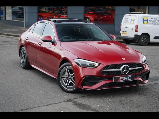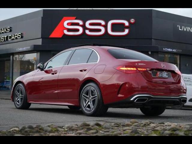 Stunning C300e AMG Line Premium Plus Finished In Red Metallic With Black Leather Interior. Fantastic Spec Inc: Widescreen Cockpit Display, Panoramic Glass Sunroof, Burmester Surround Sound, Head-Up Display, 18" AMG Alloys, Active Blind Spot Assist, Active Lane Keeping Assist, 360 Surround Camera, ParkAssist, Ambient Lighting, Dynamic Select, Fingerprint Sensor, Digital Light Headlights, Adaptive High Beam Assist Plus, Electric and Heated AMG Sports Seats With Memory, MBUX Augmented Reality for Navigation, Mirror Package, Memory Pack, Privacy Glass, Seat Comfort Package, Smartphone Integration, Sports Direct-Steer System, Four-Zone Climate, Tyre Pressure Monitoring System, Keyless Entry and Start. This C Class ...
